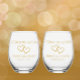 Create a stylish anniversary gift by adding the couples names and wedding or anniversary date to these stemless wine glasses. Simple, elegant script saying "Celebrating 50 Years" can be edited to any number. Two simple hand drawn golden toned intertwined hearts accent the centre or they can be deleted if desired. The couples name and date below in golden tan modern script is editable. This is a great anniversary gift, wedding gift, or birthday keepsake.