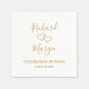 Create stylish wedding anniversary napkins by adding the couple's names and wedding or anniversary date to these white cocktail napkins. Two hand drawn hearts give a chic romantic touch. Simple, elegant script saying "Celebrating 50 Years" written in a tan golden colour can be edited to any number. Two simple hand drawn golden tan toned intertwined hearts accent the centre. Personalise the couples names in golden tan modern script. Customise the golden wedding anniversary date for a lovely wedding anniversary party table. This would look great on the guest's party table with the matching stemless wine glasses. Simple minimalistic yet romantic napkins for a lovely anniversary, wedding, or engagement party.