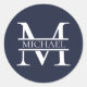 Personalised Elegant Navy Blue Monogram and Name Classic Round Sticker
