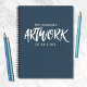 A beautiful navy and white personalised 8.5 x 11 sketchbook. The words, "The Amazing Artwork of" in a hand drawn font personalised with your name below. Customise the sketchbook with the name of your choice to make someone feel extra special. Makes a fun gift for birthdays or for Christmas. Comes in a variety of colours. Designed for you by Blackberry Boulevard.