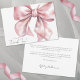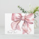 This folded thank you card features a large watercolor pink bow on the front right, with the words "Thank You!" elegantly displayed in handwritten script calligraphy on the bottom left.