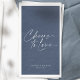 Celebrate love with this elegant wedding paper guest towel featuring the phrase "Cheers to Love" in a stylish script font. The deep blue background with white lettering creates a timeless and sophisticated look. Personalised with the couple’s names and their special date, this guest towel adds a romantic and refined touch to any wedding reception, engagement party, or anniversary celebration. Perfect for adding elegance to your event while offering a practical and stylish detail for your guests.