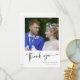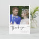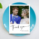 Elevate your wedding thank you with our exquisite "Personalised Elegant Wedding Thank You Card". This stunning card features a beautiful, hand-lettered "Thank You" in elegant script, adding a touch of sophistication to your heartfelt message. The front of the card showcases a custom, polaroid-style photo, perfectly capturing the joy and love of your special day. Personalise the card further by adding your names, special date, and wedding location, making it a treasured keepsake that tells your unique love story. The back of the card features a black custom message of gratitude, beautifully merging script and modern typography against a pristine white background. This thoughtful design captures your appreciation with elegance and charm, making it the perfect way to express gratitude to cherished guests or loved ones. Order our "Personalised Elegant Wedding Thank You Card" and make your thank you truly unforgettable.