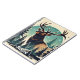 Stylised depiction of an elk with antlers amidst pine trees under starry backdrop, exuding wilderness charm.