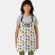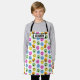 Create a cute personalised kitchen apron for your favourite chef. This apron features an all over pattern of cartoon emoji faces. The emojis are in pink, blue, yellow, green and orange and are set against a white background. The apron is ready to be personalised with a name in bold black lettering.