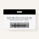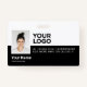 Easily personalise this Custom Horizontal Employee Name Badge with Photo, Scan Bar Code or Qr code and business logo. A simple business design in black and white colours fully customisable in front and back sizes, sans-serif basic and modern fonts and a professional and clear look. These standard security id name tags badges are avaiable with lanyard, metal clip or with retractable. You can personalise your id badge cards choosing any background colour and any font style with Graphic Design editor by clicking on customise further. No minimum order.
