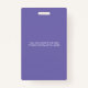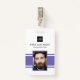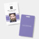Personalised business office ID badge featuring a purple and white background, a photo of the employee, your company logo, name and profession.