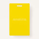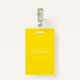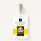 Personalised business office ID badge featuring a yellow and white background, a photo of the employee, your company logo, name and profession.
