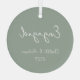 Celebrate your first Christmas as an engaged couple with this personalised glass ornament, featuring a whimsical handwritten script in white on a sage green background. The elegant yet playful design adds a touch of charm and sophistication to your holiday decor, making it a perfect keepsake for this special milestone. Personalise it with your names and the year to create a unique ornament that beautifully captures the joy and excitement of your first holiday season as an engaged couple.