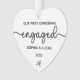 Personalise your Christmas tree with this lovely engagement Christmas keepsake, heart-shaped ornament. A sweet Christmas design with the saying Our First Christmas Engaged, and a decorative sprig of holly. Personalise with the couple's first names and year.