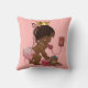 Personalised elegant vintage ethnic little princess pink throw pillow. A beautiful vintage illustration of a cute and adorable African American baby girl with stylish pink diaper, pearls, ribbons and gold crown. She is talking on an old red retro telephone telling you that she is on her way! She is holding a little pink suitcase and her quirky teddy bear is leaning against it - she's all packed up and ready for her arrival! The background is a pretty pink with dark pink customisable text. Chic, trendy, fun, fashionable, funny, amusing, humourous, whimsical, feminine, personalised / personalised custom cushion. A cute baby shower gift or new baby girl gift. If you need any assistance customising your product please contact me through my store and I will be happy to help.