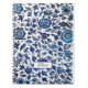 Exotic classic elegance of blue and white Chinoiserie-inspired flowers and vines on white background with customisable blank label for your name or monogram.