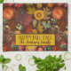 Personalised Fall Autumn Botanical kitchen towel with sunflowers, berry leaves, foliage and pretty fall patterns. Happy Fall Y'all or other custom greeting and family name or person's name.