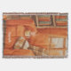 A quality printed throw has its advantages. This is a much finer weave throw than its loopier cousins, and though lighter, it is worth the investment for custom room accessorizing. The back is much prettier than the typical brown, and the fringe on the long sides very vivid, the selvage nicely done. Before photographing, I washed the throw in cold water, delicate, with a thicker woven throw the same size. On tumble dry low, this throw was dry in half the time as the other. This is a very practical quality if you use throws for furniture covers or to wrap up in frequently. The sleekness of the fabric makes it a great layer for accenting or protecting without the feeling of sitting on too much stuff. Perfect for napping or when you feel a light chill coming on. The color printing is beautiful and on this fabric, matched the design and color of my Photoshop image. This is an advantage for blending room fabrics and colors. The fringe on the short sides prints the colors from the design image and therefore varies from the side fringe. I streaked a white fractal line through the plaid pattern to give the illusion of weaving. This printed as crisp as an illusory thread, and put some white in the short side fringe, showing another advantage of print vs loomed- for artistic purposes, line lines, detail, and color integrity can be planned and preserved. My loomed throws have color limitations and more of a needlepoint texture. Print throws reproduce an exact image. The throw felt a little stiff straight out of the package, but this went away in the first delicate wash. Of course I searched the wash water for ink or bleeding and there was none.
