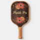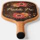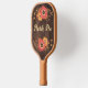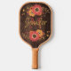 Change out your pickleball paddle each season with this autumn-inspired dark woodgrain look and tan pickleball paddle that has orange, gold, tan, and brown floral arches at the top and bottom on both sides of the paddle with customisable lettering on the front and back. The front side says, "Paddle Pro" and the back has a monogram initial in orange with your name overlaid in yellow. Email niteowlstudio@gmail.com with any request for changes.