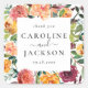 An elegant, personalised autumn-theme favour sticker to thank guests for attending your wedding or other fall event. The wedding favour thank you sticker features fall flowers like roses, mums, and buttercups in earthy autumn shades including peach, burgundy, mustard yellow, olive green, crimson, and dusty purple. Matching wedding stationery available in our "Autumn Elegance" collection.