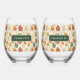 Celebrate in cosy autumn style with this personalised stemless wine glass set featuring a hand-drawn fall leaves pattern in warm seasonal colours. Add your name for a unique touch or gift this set to friends, family, or hosts as a thoughtful seasonal present. Perfect for Thanksgiving gatherings, fall parties, or simply enjoying wine, cider, or cocktails with cosy autumn vibes.