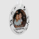 Personalised Family Black Foliage Christmas Photo Ornament. Lovely black foliage. Personalise the ornament with your family photo, family name and year.