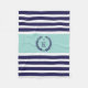 A personalised Nautical Family Emblem or crest and Wreath design. Simple, elegant, modern and trendy Nautical striped pattern or design for cosy fleece blankets. Choose your size of blanket. Navy Blue and white sailing stripes with an accent light Mint Green colour block and wreath and anchor symbol with your custom family Monogram or Initial in Navy blue. Click the 'Customise it' button to personalise this blanket and add your own family initial. This trendy contemporary modern coastal design is perfect for bedrooms, boats, beach houses, holiday houses, teenagers, college dorm or university room, home decor, sofa, couch, nursery, girls, boys or teenagers bedrooms, office. Choose your own font and colours to make it your own. Great for Christmas, Birthdays, Anniversary or Wedding, Couples or College gifts. For more colours go to zazzle.com/d_zone_designs