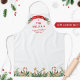 Gorgeous holiday apron with all text areas available for your own customisation! Unique design with area for your name/family name and message on the top embellished by banner with holly and mistletoe. Lower area with exquisite festive border with Christmas trees holiday cookies, greenery, hollies, stars and candy canes. Great unique gift sure to be treasured.
