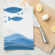 Personalised Family Modern Blue Coastal Fish Tea Towel