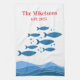 This clean coastal design features a minimalist school of fish swimming through stylised ocean waves in serene blue hues. A perfect personalised accent for beach homes or nautical kitchens, this design brings a fresh, breezy vibe to any sea-lover's space. Customisable with your family name and year for that modern maritime touch.
