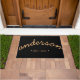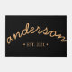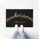 Personalised Family Name Hand Scripted Doormat. It is a great gift idea for newlyweds or new homeowners. This personalised welcome doormat in chic and durable black feature. this doormat feature is your family name or surname in hand lettered script typography, with your year established beneath.