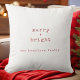 Red and white merry + bright personalised christmas throw pillow. This holiday throw pillow features a white background with christmas red text. All text can be customised and replaced with any text of your choice.