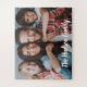 A photo puzzle that features a favourite moment captured on film with script family name overlay. A beautiful keepsake gift that is perfect to display a picture from a family photo shoot, vacation, or other special occasion. Personalise the white script custom text. Note, the text colour and font style can be customised.