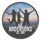 Personalised family photo gift, decorate with family name and established year in white modern sans serif font style, perfect with square photo.