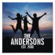 Personalised family photo gift, decorate with family name and established year in white modern sans serif font style, perfect with square photo.
