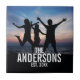 Personalised family photo gift, decorate with family name and established year in white modern sans serif font style, perfect with square photo.