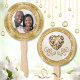 Photo, Personalised Fans for Wedding. PHOTO Wedding Fans, Picture can be Deleted to Expose the same gold heart diamond. Wonderful for your Gold themed wedding. Personalised Hand Fans for Wedding will be wonderful Wedding Souvenirs for guests. Having your Photo, Names and Date make these gorgeous, Custom Wedding Fans even more special. See BELOW on how to TRANSFER this Photo Hand Fan, Design to over 1000 other wedding party favours, wedding party supplies, gifts and so much more. Also, see how you can make CHANGES, with our handy, "EDIT USING DESIGN TOOL. Or call me, Designer Linda: 239-949-9090 EST.