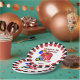 Personalised Farm 5th Birthday paper plates, cute and colourful, great for the farm or farm animal theme birthday celebration! These farm theme fifth birthday paper plates feature outside decorative rings of black, yellow,and red with a red hay barn, pig, chicken, blue farm tractor, birthday balloons, text that reads Celebrating My 5th Birthday, and an area you can add the birthday child's name!
