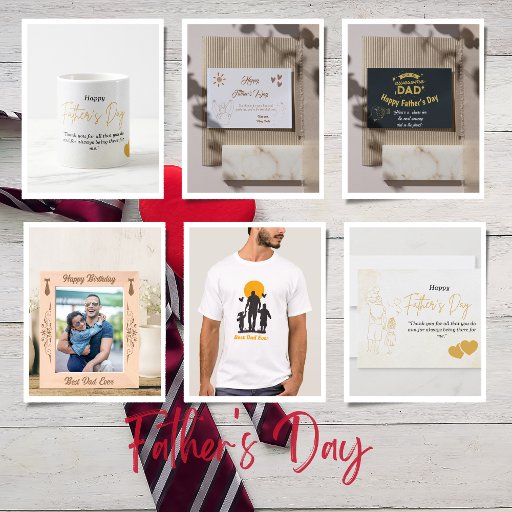 This Father's Day card features a warm and heartfelt design. The card includes an illustration of a father carrying a child on his shoulders while holding hands with another child, all drawn in a simple, elegant line art style. The text "Happy Father's Day" is prominently displayed in a stylish font. Below this, a touching message reads, "Thank you for all that you do and for always being there for me." The card also includes two heart shapes, adding to the affectionate theme. This card is personalizable, allowing for a unique and special touch for the recipient.