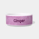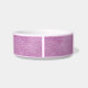 A pet food bowl with a lilac faux leather pattern. Contains space for your pet's name.