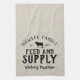 Rustic faux grainsack FEED & SUPPLY kitchen towel personalised with your family name, home city, established date or any other custom text. Please note the subtle burlap background texture is part of the printed design and product is not made of real burlap material. Click the Customise It button to add your own text and photos to create a unique one of a kind design. The perfect touch for your modern farmhouse kitchen decor!