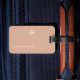 An elegant item with a graphic image of a white plane on dusty rose (custom colour) background... to identify your belongings when travelling around the world