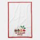 This festive kitchen towel is perfect for the holiday season. It features a colourful Christmas design with snowflakes, holly, a gingerbread man, a mug of hot cocoa, and a Santa hat. The towel is made of 100% cotton and is machine washable.