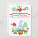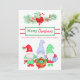 Cute hand drawn watercolor festive whimsical gnomes Merry Christmas card.