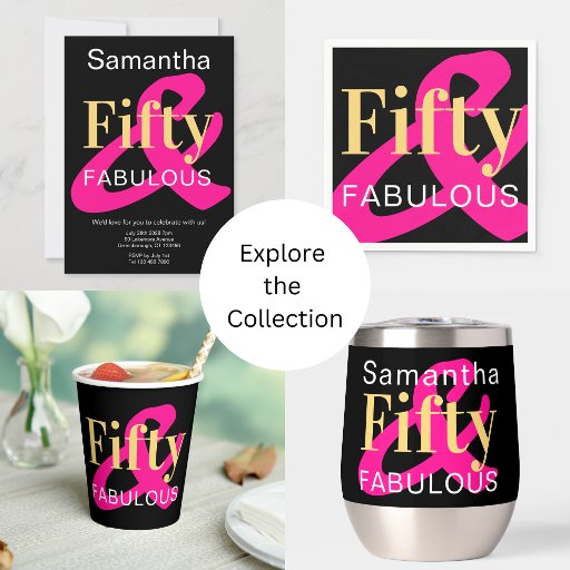50th Birthday Fifty and Fabulous Black Gold PinkDesigned by Only The Moon