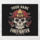 Personalised Firefighter Skull Fireman Fire Department design - Skeleton with Red Helmet and Dual Axes. Customise with your Name, Station/Dept Number and location.