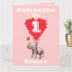Easily personalise this funny cute vintage elephant animal cartoon illustration and romantic red love heart balloons and pretty girly pink background with your daughter or girls name, and change the 1st birthday number if required to make a unique first birthday card. Customise the pretty girly pink colour from over 200 to one of her favourites.