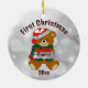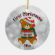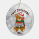 A sweet female teddy bear on a Silver Grey bokeh background with customisable name & date on front and back. Font and colour of text can also be changed.