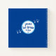 Personalised first grade fish school art book spiral notebook. Name, first grade and book title fields with school of fish within a round boarder in aqua, blue and white. School of fish in white on a blue background.