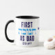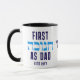 FIRST HANUKKAH AS DAD mug with CUSTOMIZABLE TEXT. Hanukkah is written in Hebrew. You can CUSTOMIZE the 'AS DAD' (eg. replaced with MOM, perhaps?) and PERSONALIZE the text at the centre with your name or your baby's name and/or year. A beautiful milestone souvenir mug for new dad celebrating his first 'paternal' Hanukkah. Matching sweatshirt and Mum version available.