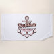 A personalised modern nautical anchor first mate graphic design on a fine beach towel in nautical style. An original casual gift idea sure to make an impression on, or off the boat. A nautical style beach towel as unique as you. Sounds good, a great gift idea. Use the "Message" link to contact us with your special design requests or for some assistance with any of your customisation project needs.