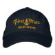 A dynamic personalised First Mate cap in golden yellow style embroidered hat sure to make an impression on, or off the boat. Make this lifesaver anchor design embroidery as unique as you are with your name, your location, or your boat's name.