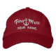 A dynamic personalised First Mate cap in nautical red and white style embroidered hat sure to make an impression on, or off the boat. Make this rope anchor design embroidery as unique as you are with your name, your location, or your boat's name.