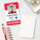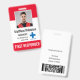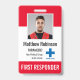 Personalise these vertical medical personnel or first responder badges with an employee photo and name, along with multiple custom text fields for title or role, hospital or healthcare facility name, employee ID number, or valid through date, along with the company logo. "FIRST RESPONDER" or your desired text appears along the bottom in bold white lettering for easy identification. Customise with a barcode on the back if needed, along with return information or other details.